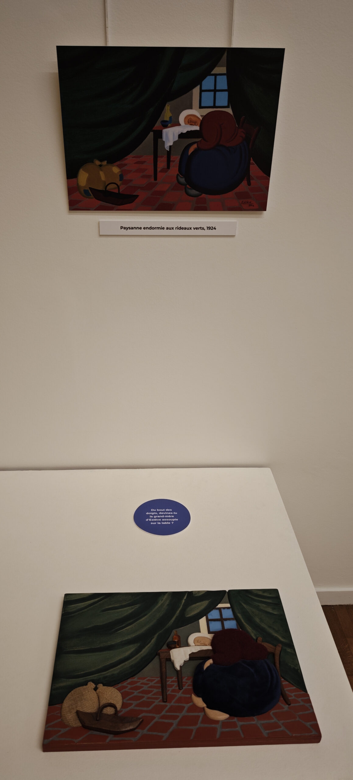 Transposition tactile du tableau Paysanne endormie aux rideaux verts de Maurice Estève pour le musée Estève de Bourges
